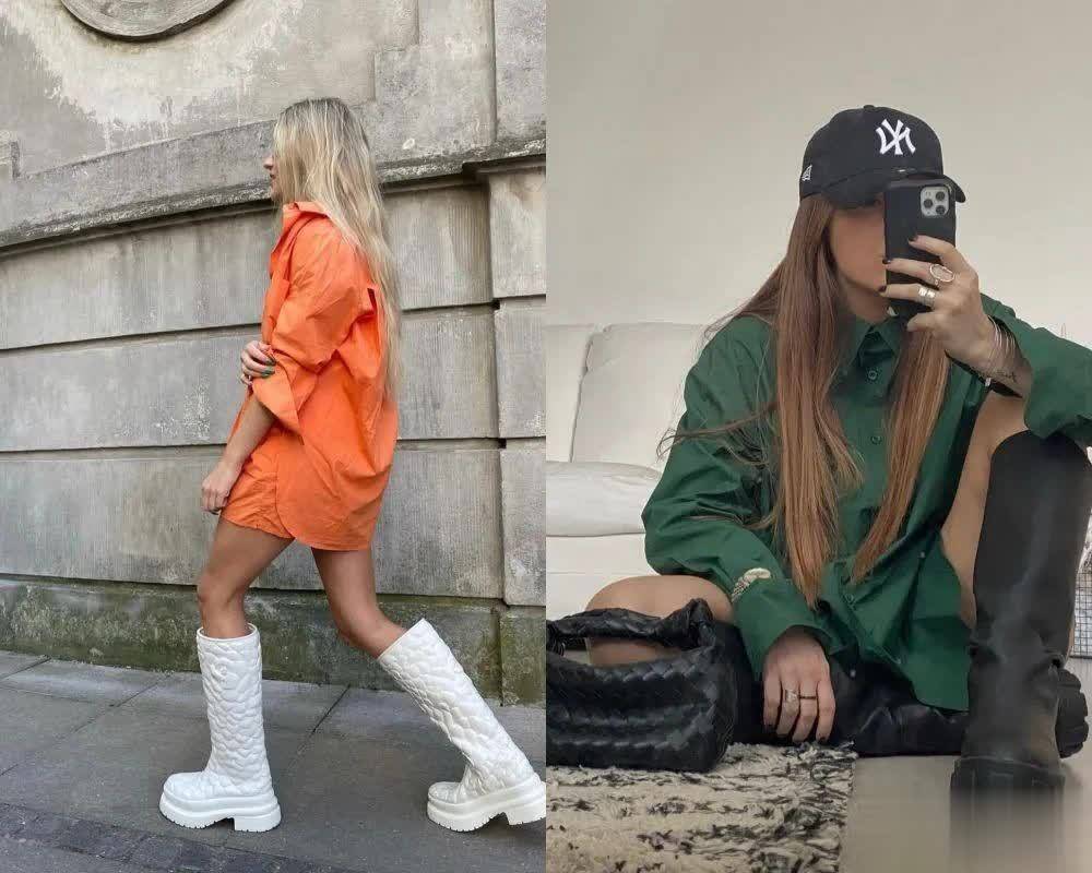 甚至连靴子都是配宽大衬衫的武器。长度在小腿的靴子自带一种粗犷感,而衬衫又是慵懒的夏日单品,所以两个搭在一起意外的和谐。不想走寻常路的姑娘们可以试一试这样的下半身失踪术,说不定就会有很大的惊喜哦。